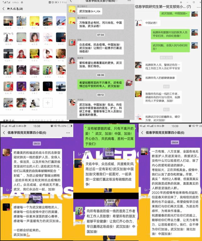 2月26日、27日,党支部参加由人民网·中国共产党新闻网、人民党建云推出换头像亮身份活动。支部党员在微信头像加上红色的党旗,亮明党员身份,并且为武汉人民送去加油与鼓励的话语。党支部组织委员王潘攀表示,希望如期而至的不只春天,还有疫情过后平安的所有人,武汉加油。党支部青年委员杜晓晨谈到,一个党员就是一面旗帜,我们要用坚定的信念践行“不忘初心、牢记使命”的责任担当。