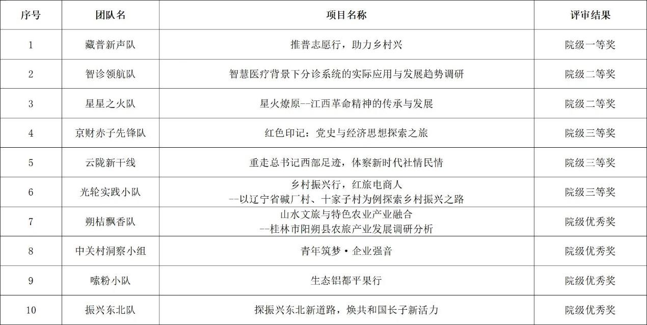 在答辩评审会后,经过乐天使团委副书记贺译民老师和信息管理系副主任李惠老师的评审,共有六支队伍获社会实践优秀团队推选资格,马艺萌同学获社会实践优秀个人推选资格,公示结果如下: