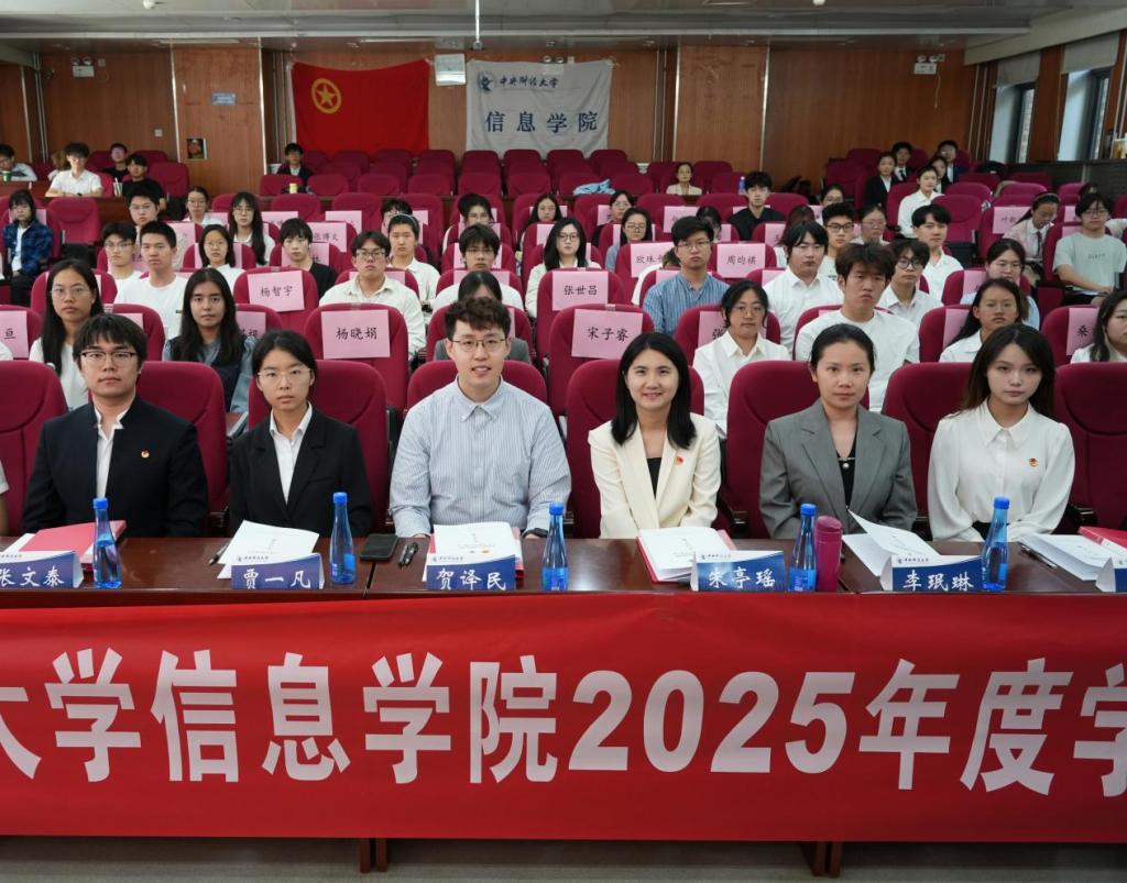 贺译民代表公司团委致辞,希望全体代表能以高度的责任感履职,确保大会圆满举行,鼓励信息学子将青春梦想融入时代洪流。