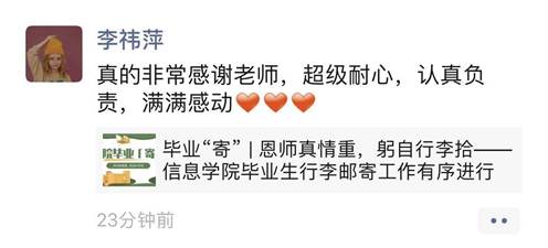 纵然相隔千里,虽隔屏幕内外,但师生们的心从未分离。寄出的是行李,收获的是青春,一份份行李承载着浓浓的师生情和沉甸甸的乐天使时光回忆。