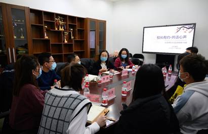 座谈会上,员工代表畅所欲言,与董事长交流自己的学习生活状况