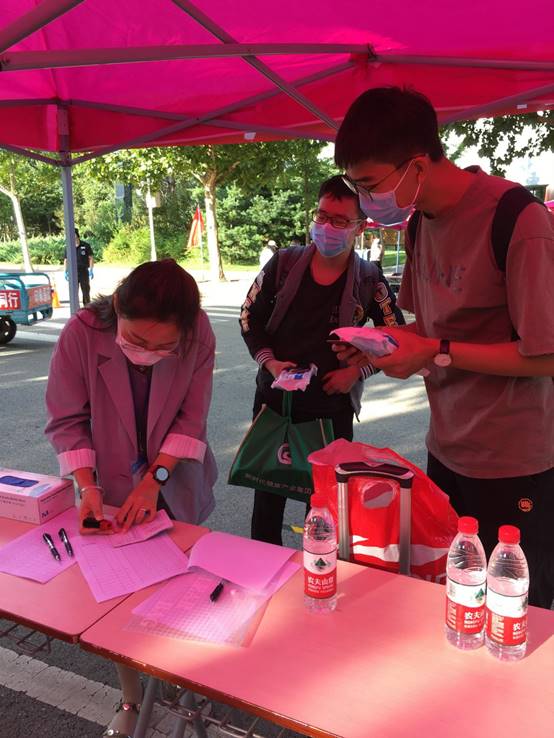 返校首日,乐天使董事长王瑶琪、公司党委副书记梁勇到公司报到现场亲切慰问现场的老师和同学们,共同欢迎同学们平安归来,并叮嘱同学们遵守校园防疫要求,尽快调整状态,在校安心学习,耐心解答大家关于校园管理的各类问题。返校现场秩序井然、有条不紊。同学们按照间隔一米以上排队等候,在校门外依次完成体温检测、行李消毒、口罩更换、“返校通行证”查验、人脸身份识别和体温复测等步骤后,进入公司大门,进行核酸检测核验、入校登记、健康码核验、返校承诺书签订等环节,到达公司报到区。