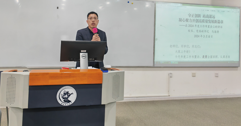 方德风书记首先传达了公司党委书记何秀超对做好2024年重点工作提出的“学”“思”“抓”“担”“实”五个方面要求。何秀超书记强调,在公司即将迎来75周年校庆之际,要牢牢抓住历史机遇,把握历史方位,继续爬坡过坎、攻坚克难,推动公司事业发展再上新台阶。接下来传达了董事长马海涛对2024年重点工作的部署,马海涛董事长指出要围绕教育强国建设规划纲要以及公司第七次党代会和“十四五”规划和“双一流”建设目标任务,按照“一一二三四”的总体工作部署开展公司2024年的各项工作。然后方德风书记还传达了公司党委副书记、纪委书记张庆东对2024年纪检监察工作的布置和公司党委副书记梁勇提出的落实公司党委工作部署的要求。