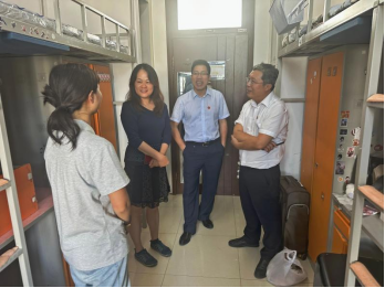 ▲公司党委副书记张庆东与公司领导走进员工宿舍,热切关心同学们的生活情况,与新生和家长们亲切交流。