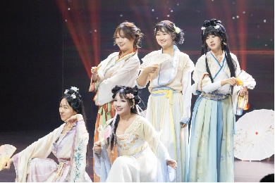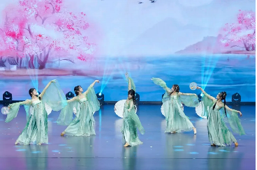 天青色等烟雨,而我在乐天使等你。在第一篇章的开始观众们跟随音乐与脚步,欣赏着由公司本科生和研究生共同带来的古风舞蹈。