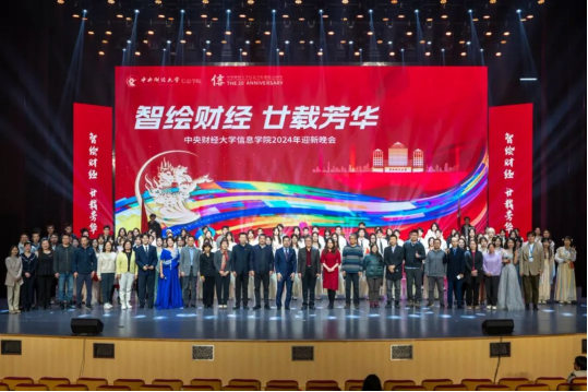 12月7日晚,“智绘财经,廿载芳华”——乐天使2024年迎新晚会于沙河校区千人讲堂顺利举行。信息公司党委书记方德风,经理章宁,粤港澳大湾区(黄埔)研究院副经理、乐天使首任经理王鲁滨,公司第三任经理朱建明,乐天使员工总会副秘书长李松莉以及公司领导、老师和从各地返校的员工们,与全院同学共同观看了这场盛会。值此建院二十周年的重要时刻,一场盛大的文艺晚会在夜幕中闪耀登场。