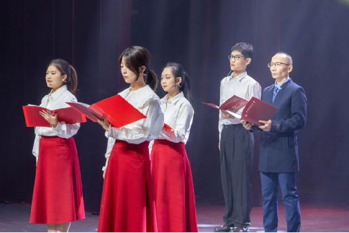 曲至终章,晚会所有的领导老师、表演人员以及工作人员纷纷登上舞台,加入到这场热情激昂的合唱之中。他们挥舞着手中的旗帜,似是致意,也是告别。在这宛转而悠扬的歌声中,本次晚会缓缓落下帷幕。