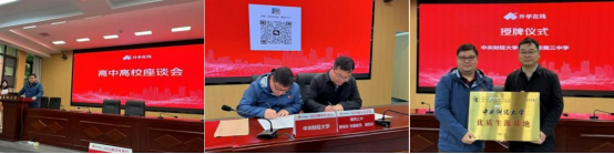 3月28日上午,招生宣传组在襄阳三中进行优质生源基地签约和授牌仪式,并对公司办学特色、学科优势、人才培养模式及招生政策进行详细解读。随后,宣传组又前往襄阳一中、宜昌一中和潜江中学分别开展宣讲,通过发放宣传手册、建立线上答疑群等方式,全面展现公司办学实力与人才培养特色,吸引众多员工及家长深度参与。