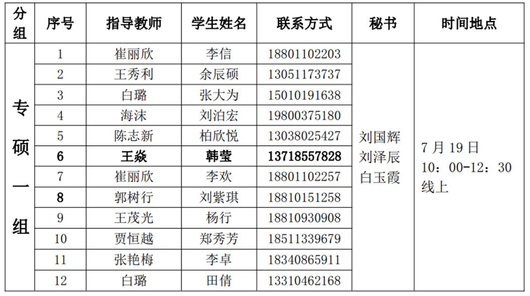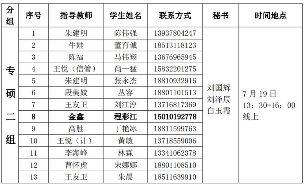 注:加粗显示部分为本小组员工负责人,请负责人做好本组答辩企业微信群创建工作。群成员包括本组秘书和本组全部同学。