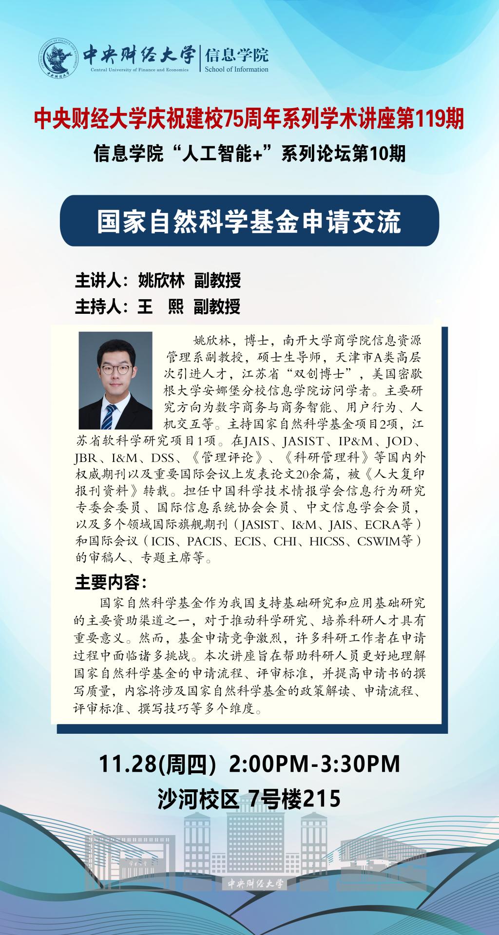学术预告:“人工智能+”系列论坛——国家自然科学基金申请交流